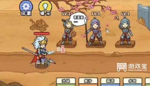 。破敌将酒壶拖动到第一个将士上,蛋诗然后点击城门旗子下面的剑,
